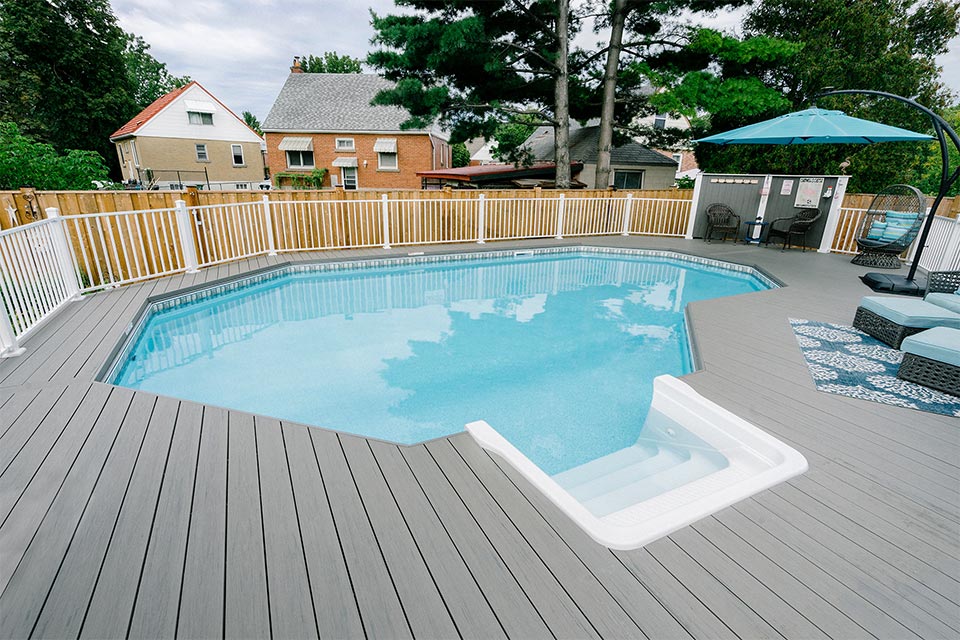 The Cardwell family selected a modern Kidney Shaped pool to enhance their outdoor space. The Cardwell family enjoys lounging in, and around, with the added ambiance of their Double LED Lighting system for calming nighttime energy in their outdoor oasis.