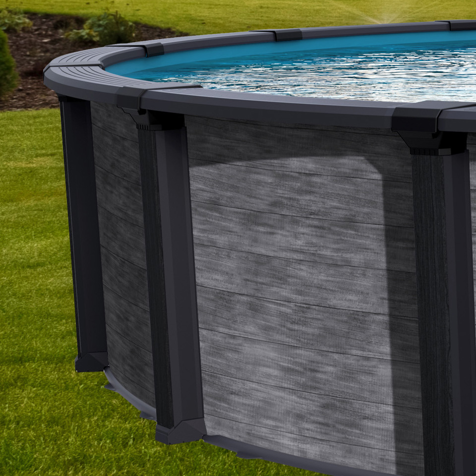 The Aqua Leader Imperia Above ground swimming pool was designed with three key ingredients in mind – durability, low maintenance, and family fun! The 6” resin top rails and 7.5” wall posts were created using a state of the art injection moulding process for superior strength and preservation over time that also makes these pieces salt water friendly. This beautiful above ground pool features some incredible contemporary finishes including rounded top rail caps, wall posts inspired by museum pillars, and engineered top rails. The Imperia top rails feature unique channels that work to capture water making your rails less slippery when entering and exiting the pool. The 54” wall is the tallest we offer making it the perfect option for families with kids from young to old and swimmers from beginner to professional.