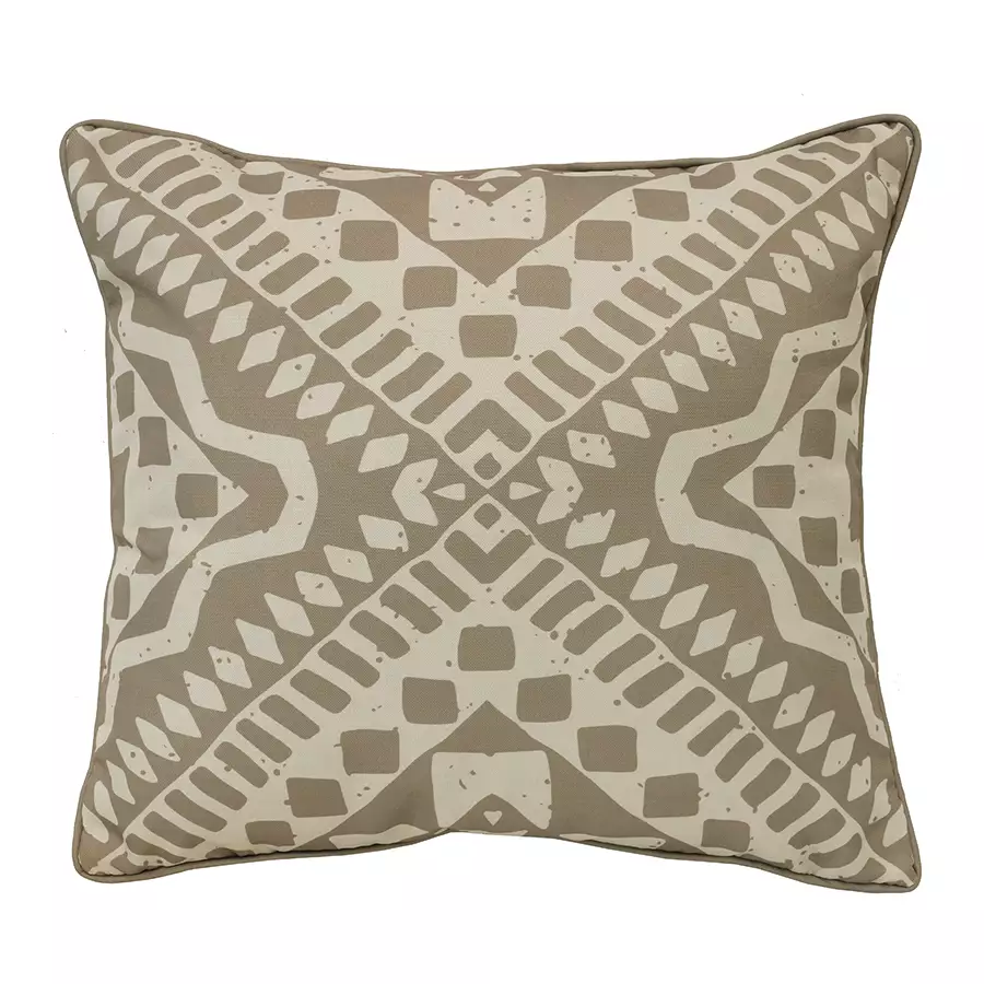 The 18" Square Tribal Taupe Pillow is a neutral throw pillow that will look wonderful in any outdoor setting.