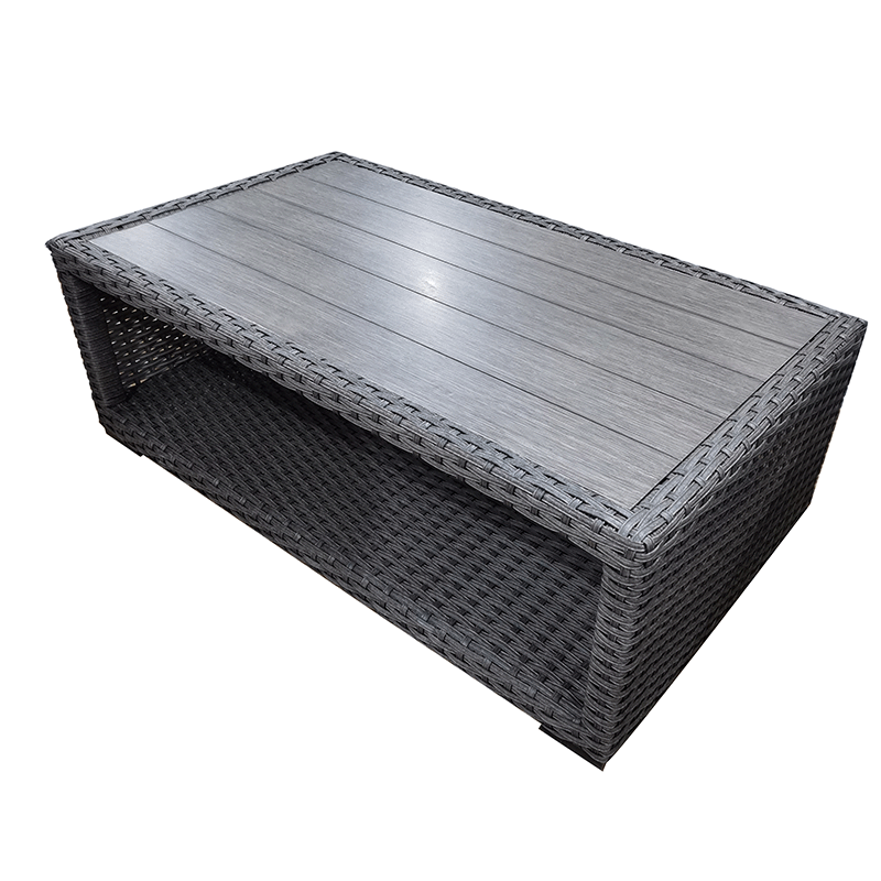 - Wicker-Framed Coffee Table: 46" x 26" x 17"