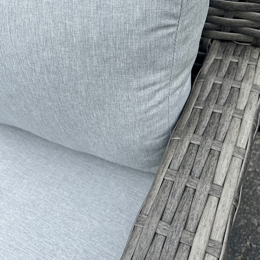 - 6" thick cushions with fiber wrapped foam interiors help prevent sagging