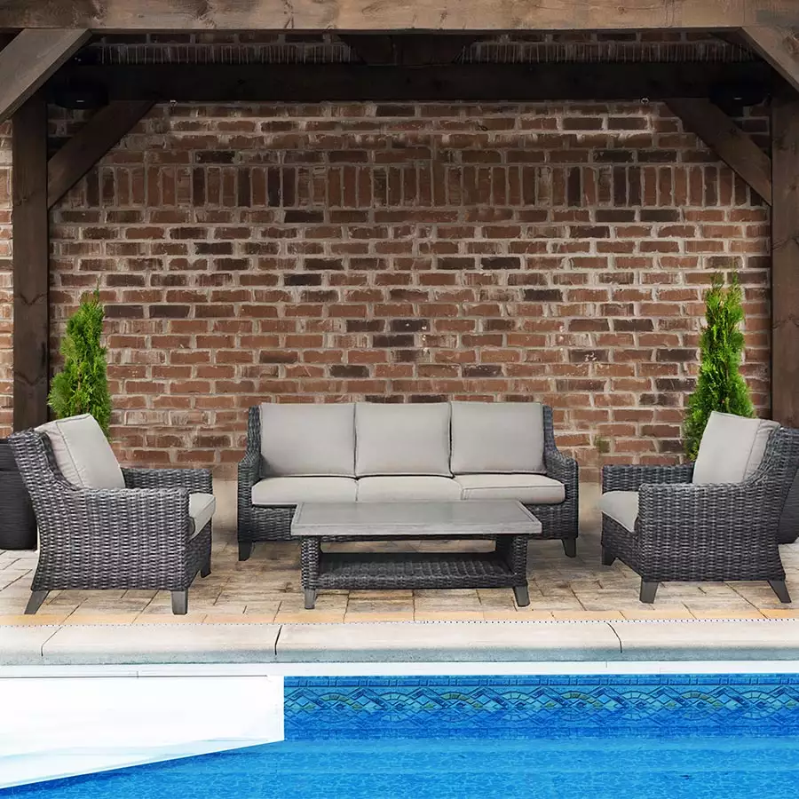 The Lake Mead Swivel Chair is elegant and convenient. Enjoy 360° views of your backyard paradise in this easy-to-maneuver chair. The Swivel Chair has a charming, walnut, resin wicker and a plush, Sunbrella cushion in the shade Cast Shale. These cushions are the perfect colour to compliment the frame and are comfortable beyond belief.