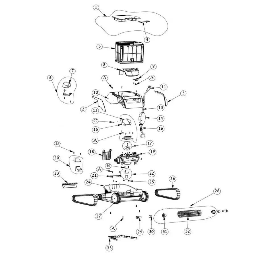 Below you'll find a consolidated list of the replacement parts for the Maytronics Dolphin Encore.