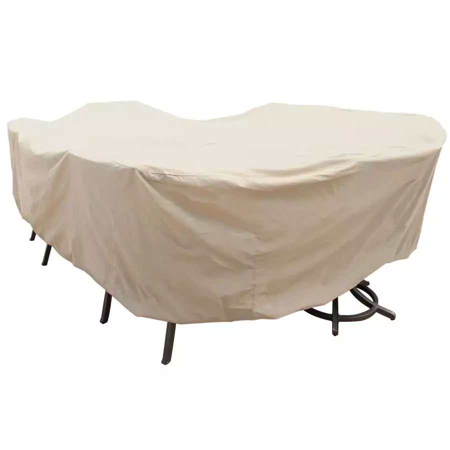 Protect your patio furniture with the Large Oval Table and Chair Cover! This cover is constructed of durable Rhinoweave material, is machine washable, water resistant and breathable. Enjoy spring cinch lock and cord for a snug fit on your furniture. 96"x180"x36"